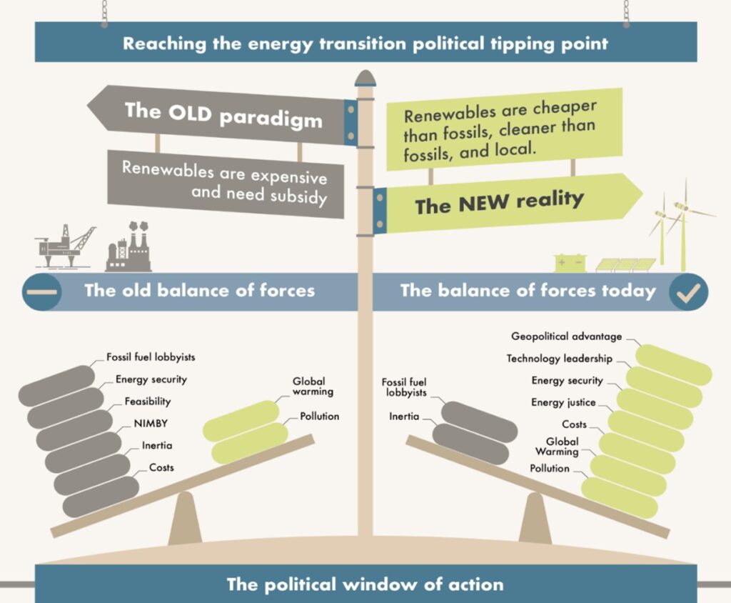 While politically motivated, the recent conflict in Ukraine brought home the importance of energy security. High prices of fossil fuels reduce fossil fuel demand and massively increase the competitiveness of renewable technologies.