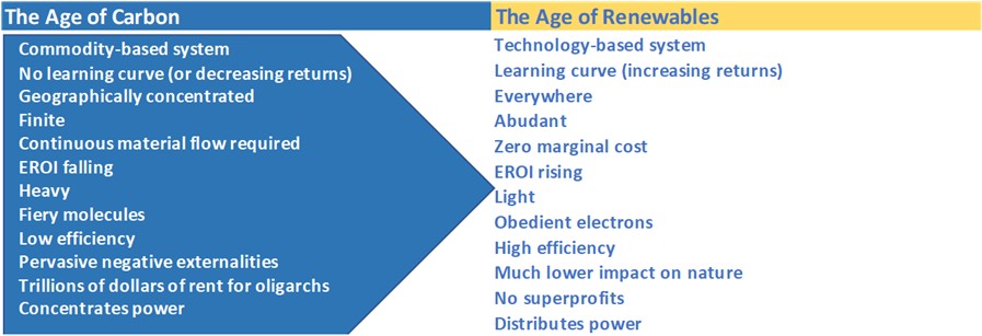 The Energy Trilemma – cost, security, and climate: once at odds, now stand fully aligned with renewable electricity being the cheapest source of electricity in over 90% of the world. Further, 90% of people live in countries with abundant renewable energy. As an icing on the cake, renewables have an ecological footprint c.100 time lower than fossil fuels. Thus, the alignment of cost, convenience, and energy independence/security under the aegis of climate change mitigation is creating the opportunity of the decade. The transition has led to the creation of technologies which cannot be un-invented, vesting irreversibility in this megatrend.